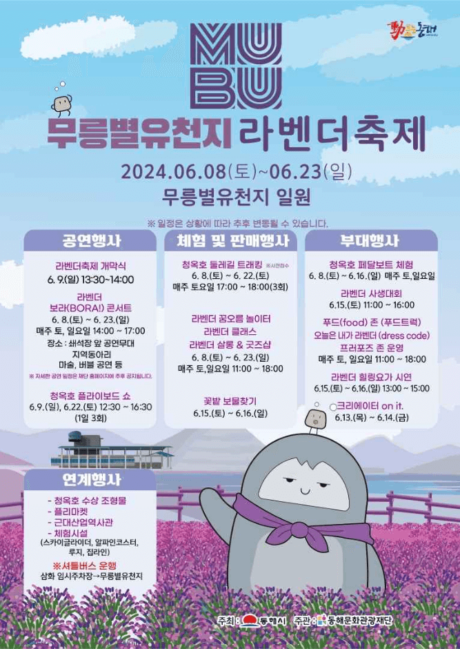 무릉별유천지 라벨더축제 행사 일정 : 2024.06.08 ~ 2024.06.23